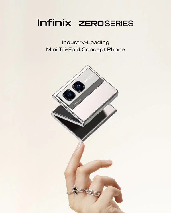根据官方渲染图,传音的InfinixZEROSERIES是一款采用三折叠屏设计的小折叠屏手机,后置双摄影像系统。